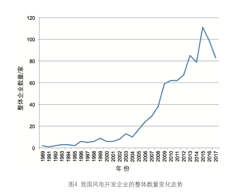 从各类整机制造企业的数量变化来看,众所周知,由于国内企业尚未 掌握相关技术,我国风电开发早期采 用的是利用国外政府赠款、引进国外 设备的模式。因此,在较长一段时期 内,国内市场一直为外资企业把控, 数量从最初的2家增加到1997年的8家。此后,这类企业的数量存在波动,2009年之后则持续减少,2012年以 来仅有GE、西门子-歌美飒、Vestas三家企业维持在华业务。此前有观点 将外资企业的撤离归咎于政府相关部 门设定的设备国产化率要求,但实际 上早在2009年,国家发展改革委就印 发了《关于取消风电工程项目采购设 备国产化率要求的通知》(发改能源〔2009〕2991号)。仔细分析可知,除 了价格因素外,导致上述局面的一个 最主要原因是,外资企业缺乏战略调 整的灵活性,未能及时根据中国市场 的特点推出更加多元化的产品和服务。